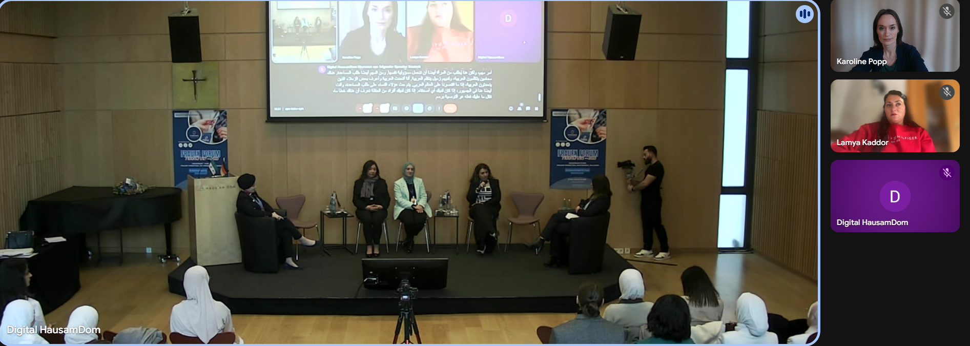 Karoline Popp war als Sprecherin zum Frauenforum der Syrmania Assembly e.V eingeladen. Im Rahmen einer Podiumsdiskussion mit Nahla Osman (Verband deutsch-syrischer Hilfsvereine e.V.), Lamya Kaddor (MdB B90/Grüne), Souriana Iskandar (Anwältin) und Rossana Gatta (Psychologin/Coach) sprach sie mit den Anwesenden über die Herausforderungen, denen geflüchtete Frauen gegenüberstehen, und über das zivilgesellschaftliche Engagement der syrischen Community in Deutschland. Die Diskussion wurde moderiert von Zilal Meknas und Naram Alomar.